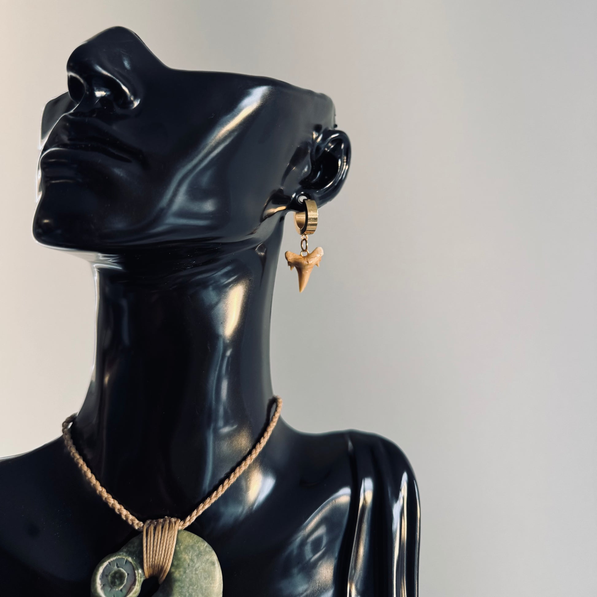 A bold yet refined design. Chunky gold-plated huggies paired with a small, dainty real mako tooth. Each tooth carries its own unique shape and size, holding mana that cannot be replicated. No two pairs are the same. Every set is crafted by nature and created to find its rightful owner. The style is consistent but the individuality of each tooth makes every pair a true taonga in its own right.